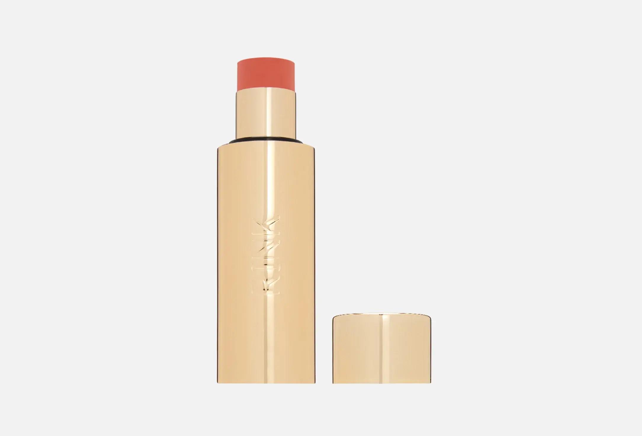 Экстракт сицилийского кактуса отвечает за увлажнение и защиту от окислителей, стевия удерживает влагу и разглаживает поверхность. Пленкообразующие компоненты создают мягкий барьер, который не смывается дождем. Низкая плотность покрытия позволяет носить средство каждый день, не перегружая кожу. Практичная пипетка позволяет регулировать количество: достаточно пары капель, чтобы выдержать ливень и остаться с ровным тоном.2. Кремовые румяна-стик RINK Glow Balm Blush Stick