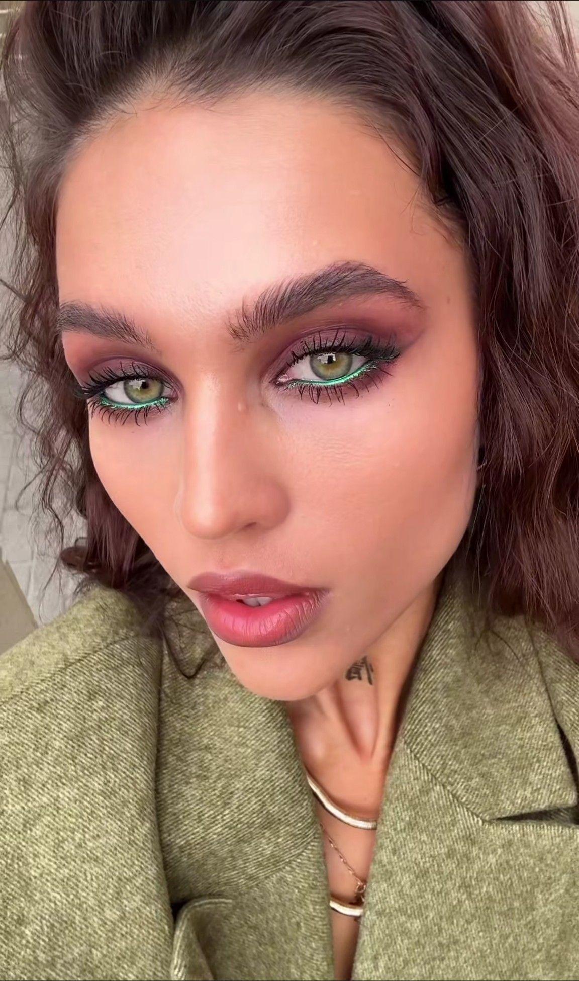 Наиболее частый вариант, который встречается в интернете — микс винных и зеленых теней с обязательно бордовой тушью. Именно она помогает собрать весь образ воедино и максимально выигрышно подчеркнуть задумку. Кстати, если верить на слово инфлюенсерам, темно-красный оттенок ресниц идет всем — не зря же в прошлом году все сходили с ума по туши бургунди.