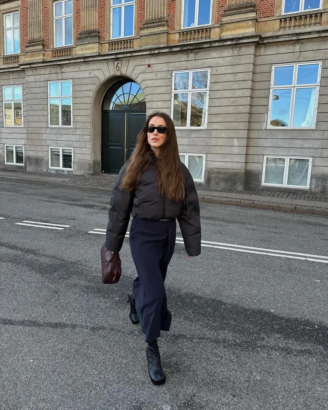 Одно из главных преимуществ — можно не сильно думать о том, что надеть под него, потому что удлиненный пуховик сразу становится главным героем ваших уличных образов (читайте также: Шапки, береты и кепки: самые модные головные уборы зимы 2025/26).